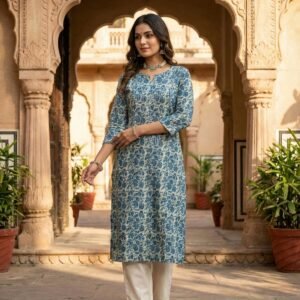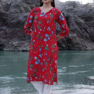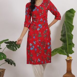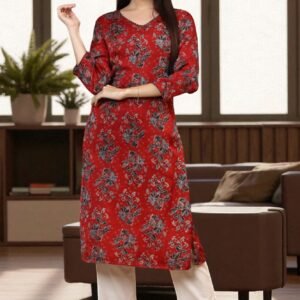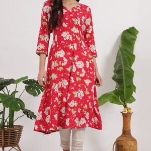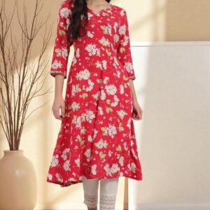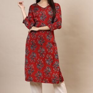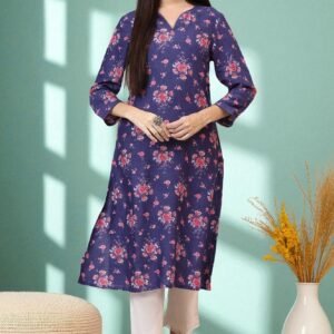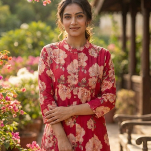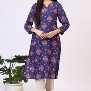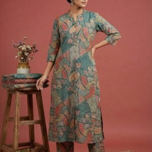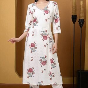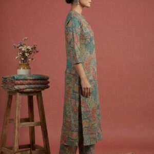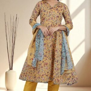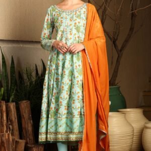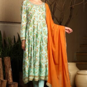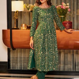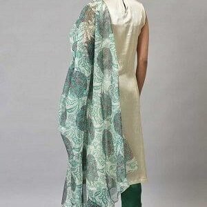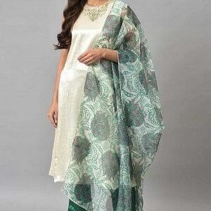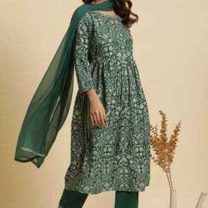 Dark Green Floral Printed Kurta, Pants & Dupatta Set