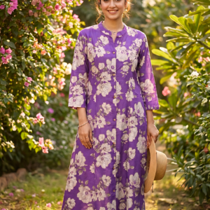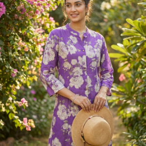 Purple Layered Suzani Printed Kurta, Tights and Dupatta Set