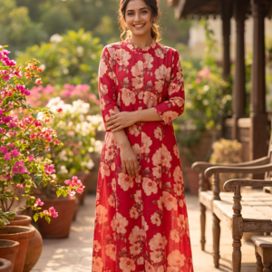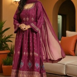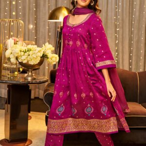 Dark Pink Sequined Anarkali kurta, Tights & Dupatta Set
