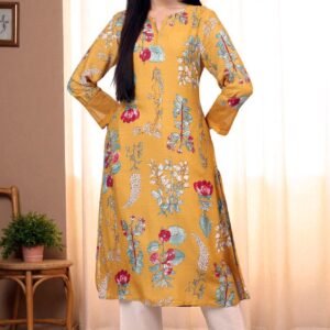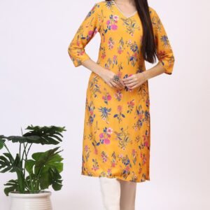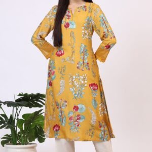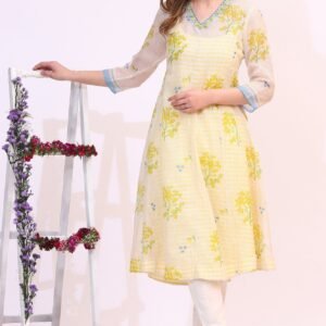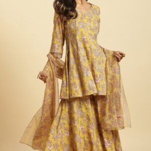 Yellow Floral Printed Short Flared Kurta, Sharara And Dupatta Set