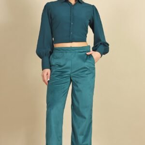 Green Metallic Embroidery Mesh Flared Kurta & Skirt with Dupatta Set
