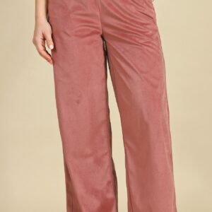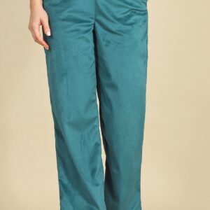 Brown Solid Straight-fit Cotton Pants with Slip-On Closure