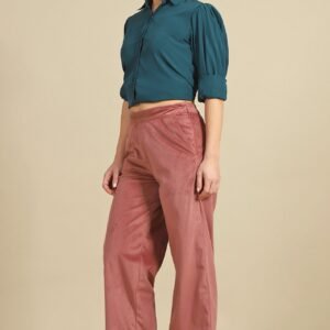 Brown Solid Straight Fit Cotton Pants with YKK Zipper