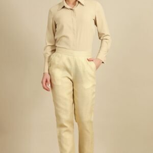 Beige Solid Straight Fit Cotton Pants with YKK Zipper