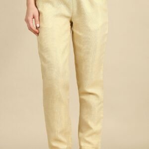 Off White Yarn Dyed Straight Fit Cotton Blend Trousers With Zari Detailing