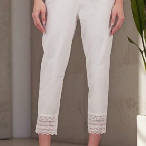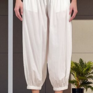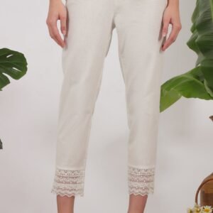 White Printed Cotton Lurex Dobby Flared Kurta with Embroidered Yoke