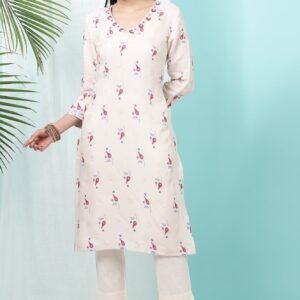 Off-White Floral Printed Rayon Straight Kurta