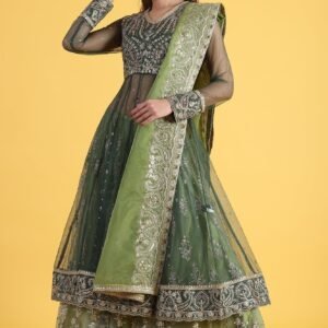 Elevate your special occasion wardrobe with this stunning seaweed blue ethnic set from W. This fusion ensemble features a sequin-adorned anarkali kurta with a flattering v-neckline and three-quarter sleeves. The flared silhouette of the kurta is complemented by matching flared pants and a dupatta, creating a graceful and eye-catching look. Crafted from viscose using woven construction techniques, this set offers both comfort and style. The hand-wash care instructions ensure easy maintenance of this exquisite outfit. Perfect for weddings, festivals, or any special event, this ethnic set combines traditional elements with contemporary design for a truly captivating appearance. Style this outfit with a pair of high heels for a glamorous look.
