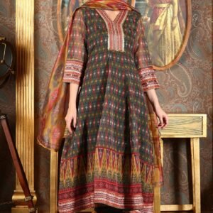 Purple Anarkali Embroidered Kurta In V Neck. It Comes With Matching Parallel Pants And Jacquard Dupatta.