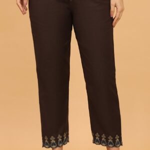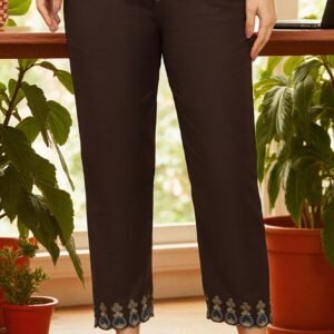 A V-neck kurta crafted from fluid modal satin, showcasing exquisite floral motifs created using the traditional Ajrakh printing technique. The neckline is further accentuated with delicate mukaish detailing for an added touch of elegance.