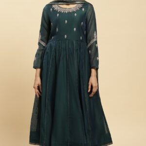 Embrace casual elegance with this women’s ethnic set featuring a kurta and slim pant. Crafted from 100% pure cotton, this woven ensemble offers comfort and style for everyday wear. The yellow kurta boasts a charming keyhole neckline and three-quarter sleeves, perfect for various occasions. The floral printed design adds a touch of femininity, while the flared silhouette creates a graceful flow. This ethnic set combines traditional elements with modern aesthetics, making it a versatile addition to your wardrobe. The slim pants complement the kurta, creating a balanced and flattering look. Whether you’re attending a casual gathering or running errands, this outfit ensures you look effortlessly chic while staying comfortable throughout the day.